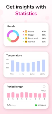 Our period tracker is easy to use and offers everything you need: Track irregular periods, weight, temperature, moods, blood flow, symptoms and more.